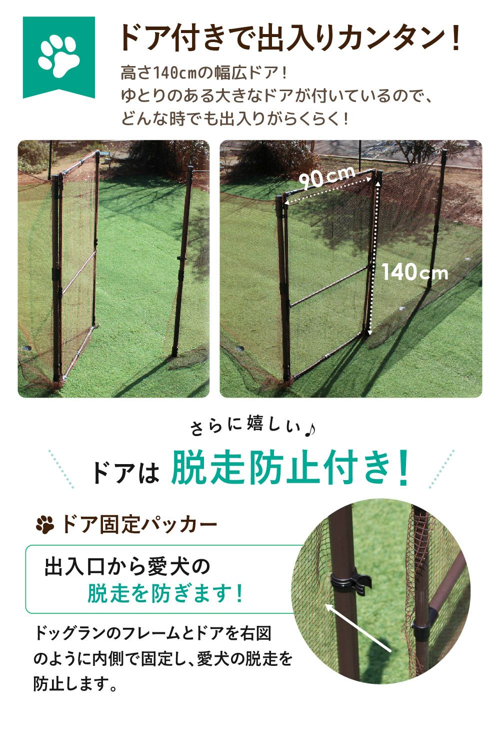 仕様・特徴 ドッグランセット140cm専用のドア単品です、増設・交換にご使用いただけます。