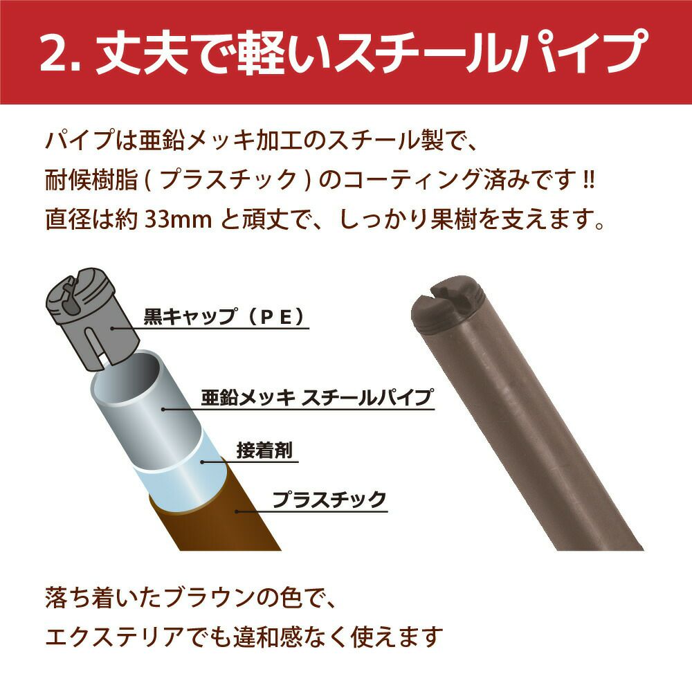 骨組みのパイプは亜鉛メッキパイプ(樹脂コーティング)を使用しており、丈夫で長持ちします。