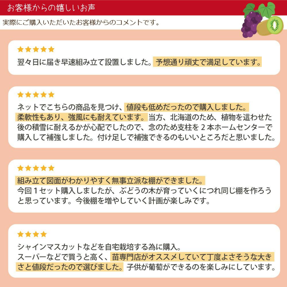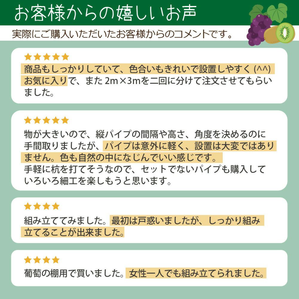 季節に応じて、防虫ネットで害虫の被害を防いだり、屋根ビニールを遮光ネットに張り替えて猛暑対策にもなります。カラスなどの害鳥対策にもぴったりです。