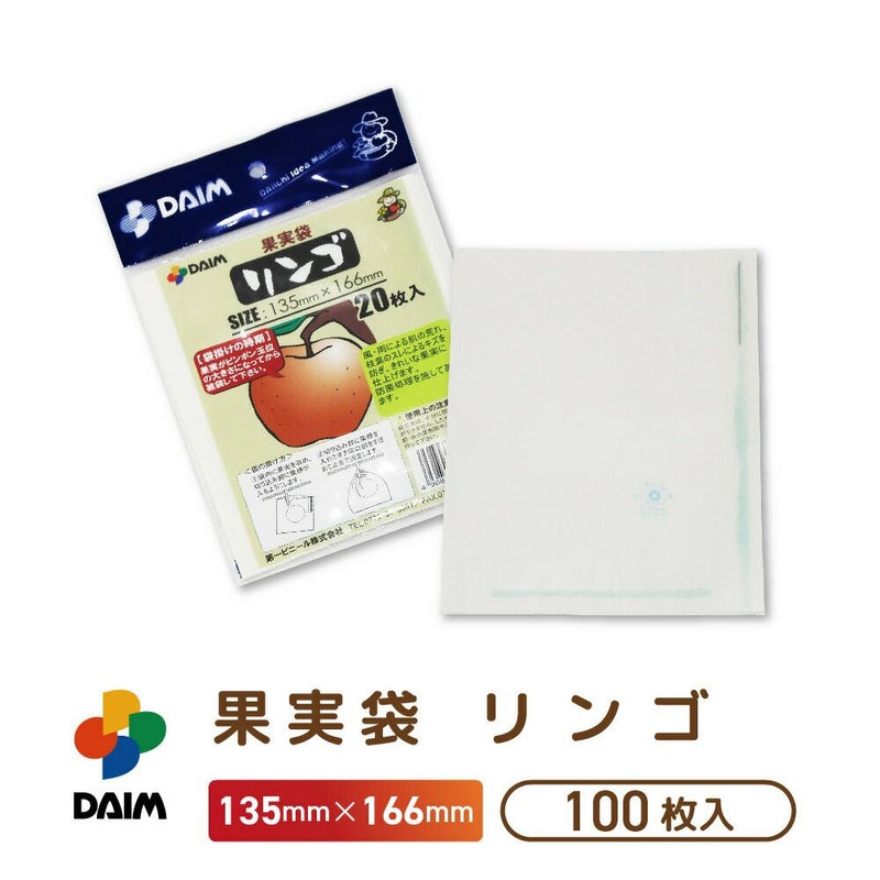雨や風による果実の肌荒れやキズを防ぐ daim 果実袋 100枚入り リンゴ 135mm×166mm
