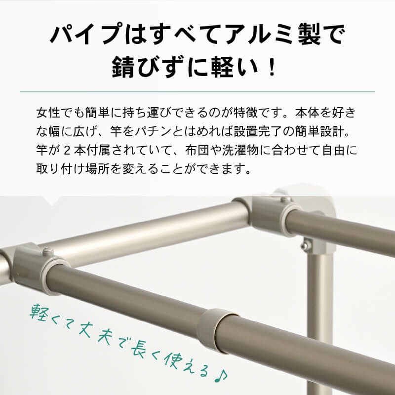 骨組みのパイプは亜鉛メッキパイプ(樹脂コーティング)を使用しており、丈夫で長持ちします。