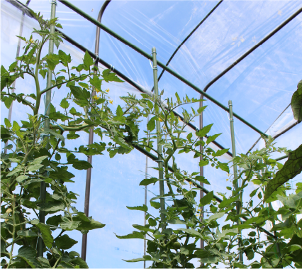 夏に人気のトマト栽培の場合、側面ビニールを外して防虫ネットを張るだけで、雨よけ、虫よけとしてお使いいただけます。