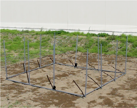 ②①で開けた穴に脚パイプを40cm埋め込み、固定します