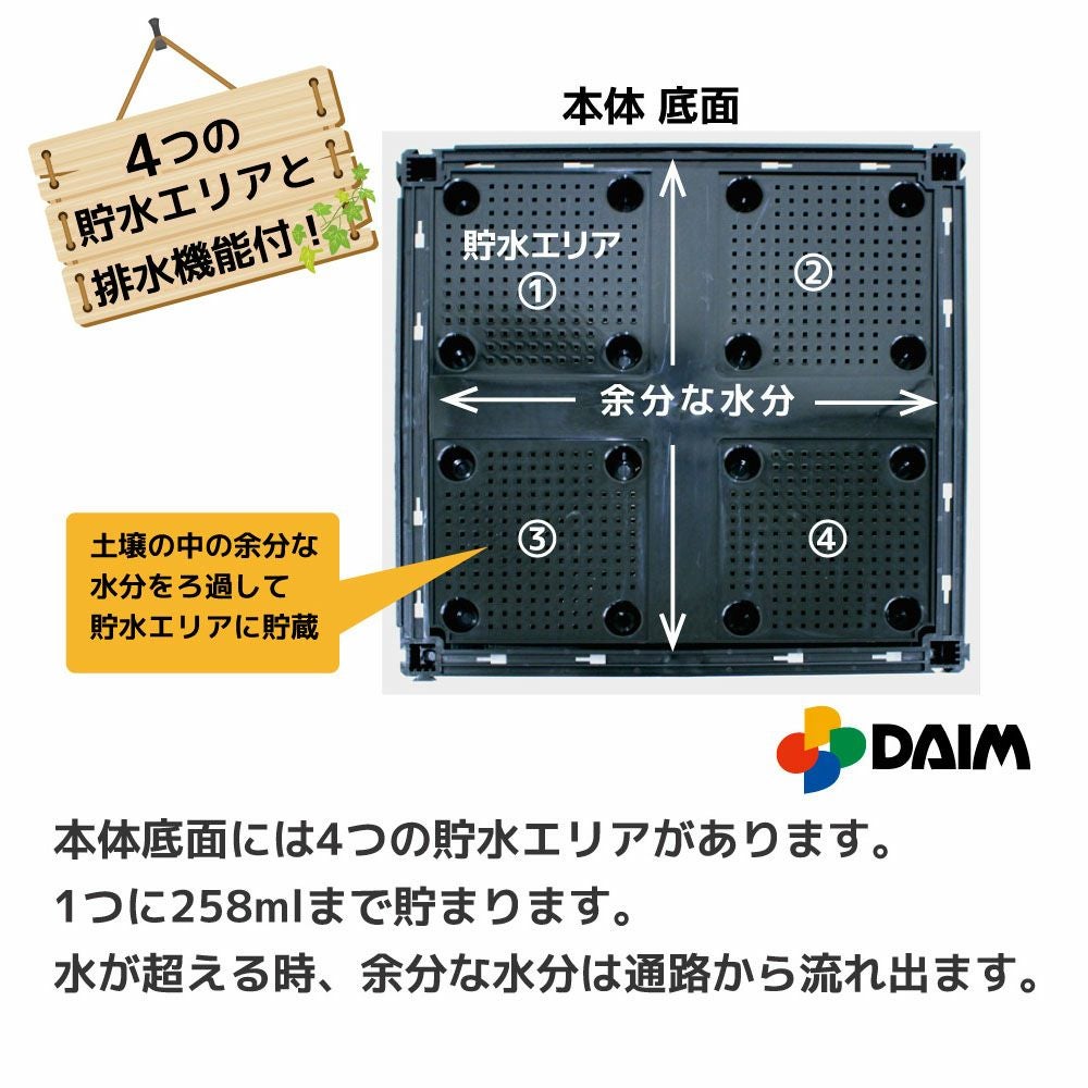 他の画像を見る ダイムファクトリーオリジナル商品貯水機能付きでお世話も楽々、コンパクトガーデン daim 脚付きガーデンボックス 土容量 20L 1セット入り 当店特別価格 ¥ 4,780 税込 会員特別価格 ¥ 4,560 税込 カートに入れる お気に入りに登録する