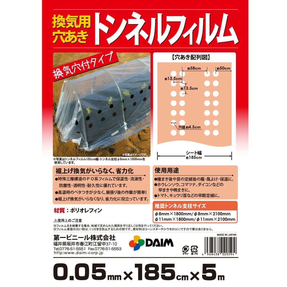 他の画像を見る トンネルに優れたフィルムです。 daim 換気用トンネルフィルム 0.05mm×185cm×5m 当店特別価格 ¥ 2,400 税込 会員特別価格 ¥ 2,290 税込 カートに入れる お気に入りに登録する