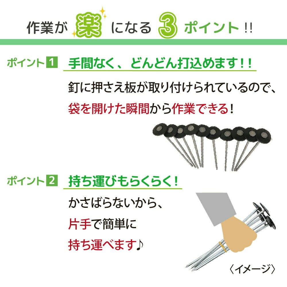 他の画像を見る 作業性大幅アップ!!押さえ板と釘の組み立てをなくす!防草シートの固定などに! daim 防草シート押さえ 楽釘 長さ20cm 50本入り 当店特別価格 ¥ 2,280 税込 会員特別価格 ¥ 2,180 税込 カートに入れる お気に入りに登録する