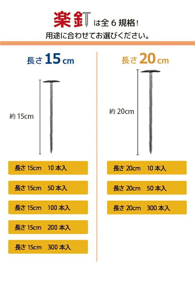 他の画像を見る ストレスフリーで楽なんです。おさえ板と釘の組み立て作業がなくなる! daim 防草シート押さえ 楽釘 長さ20cm 300本入り 当店特別価格 ¥ 12,450 税込 会員特別価格 ¥ 11,860 税込 カートに入れる お気に入りに登録する