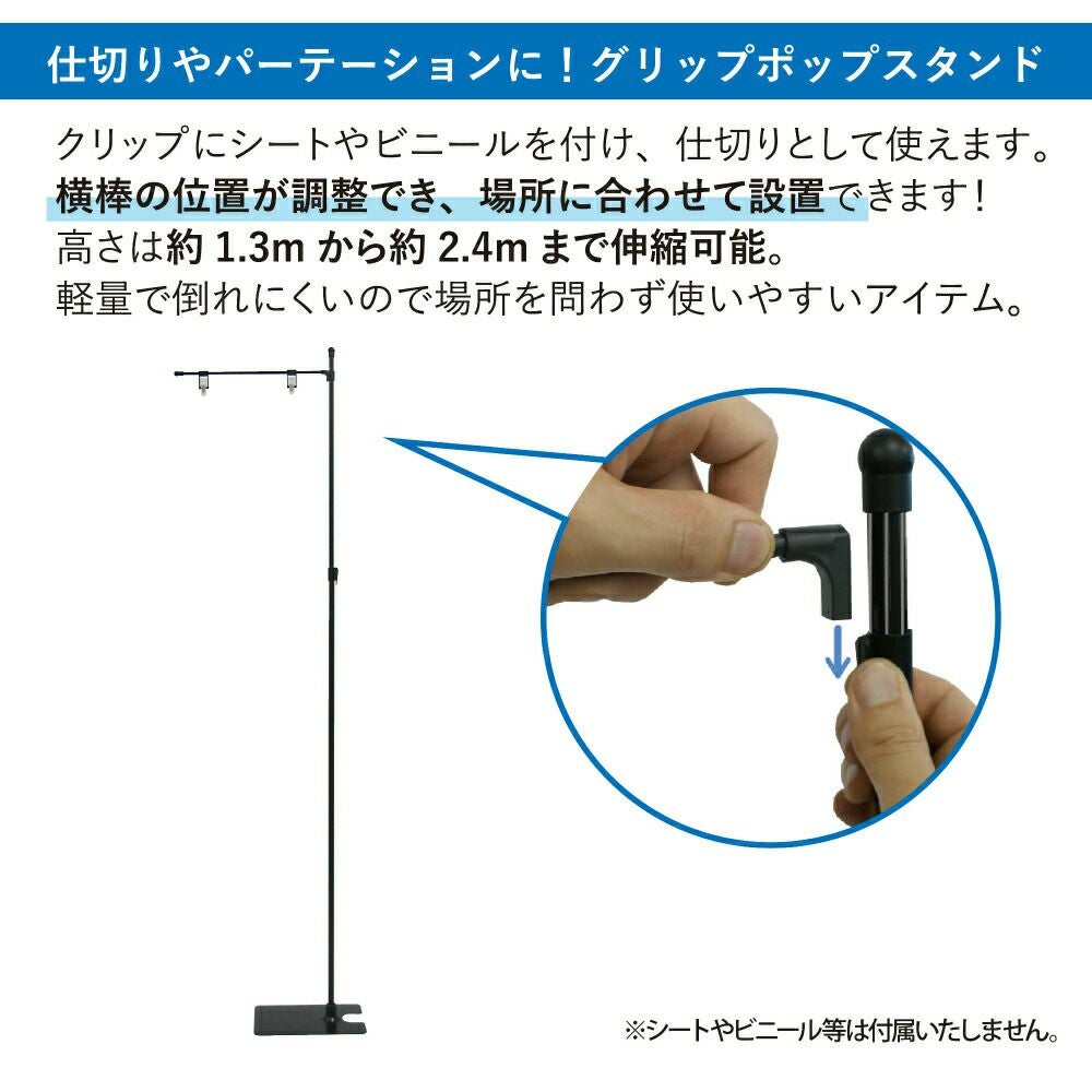 他の画像を見る さらに軽量化!倒れにくく待ち運びも設置もラク!お好きな位置・角度に販促物を取り付けられます! daim グリップポップスタンド ライト 10台入り 1.3m~2.4m伸縮式 横棒42cm 当店特別価格 ¥ 19,800 税込 会員特別価格 ¥ 18,900 税込 カートに入れる お気に入りに登録する